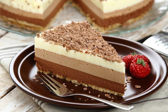 Kruchy spód, a nad nim…czekolada! Mniam, aż ma się ochotę na coś słodkiego! Szczególnie, gdy każda kolejna warstwa to lekka pianka, którą przygotujemy bez pieczenia. Wystarczy słodka śmietanka i żelatyna, by wszystkie Mamy będące miłośniczkami słodkości, otrzymały wymarzony prezent.