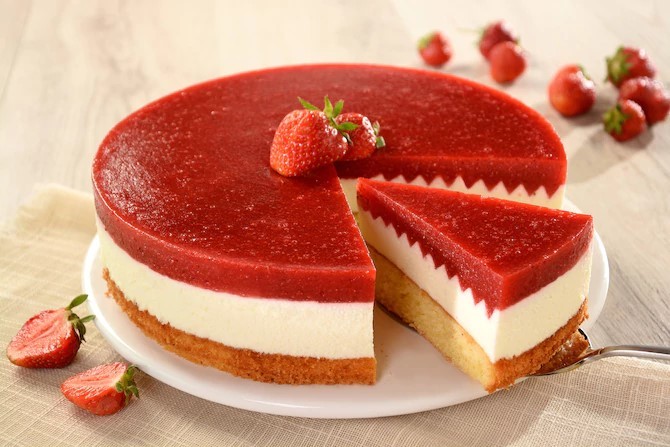 - Do przygotowania masy serowej i truskawkowej wykorzystaj żelatynę – dwie porcje zalej oddzielnie 1/3 szklanki zimnej wody i pozostaw do momentu, aż napęcznieje. Kiedy będzie już gotowa, podgrzej ją w kąpieli wodnej tak, by się rozpuściła.