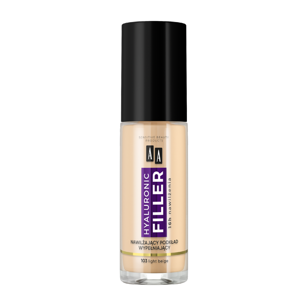 Podkład, który idealnie wypełni niechciane zmarszczki. Formuła filler, czyli formuła pełna ceramidów i kwasu hialuronowego. Połączenie tych dwóch kwasów, sprawi, że nasza cera będzie bardziej nawilżona w ciągu dnia, zmarszczki będą wypełnione, a owal twarzy wymodelowany. Podkład z marki AA jest świetny na co dzień, ponieważ nie ma mocnego krycia, nie obciąża skóry i nie zostawia efektu maski.