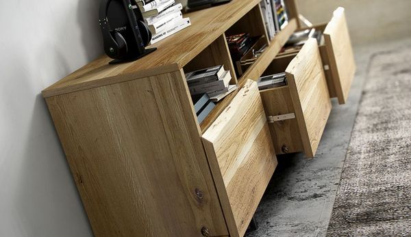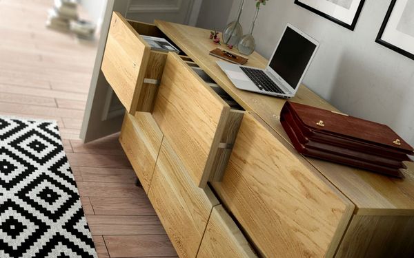– Może tu być stół jadalny oraz pasujący do niego stolik kawowy, oba o blatach wykonanych z litego drewna. W stylu awangardowym będzie także komoda o frontach posiadających unikalne pęknięcia w powierzchni drewna, a także biurko, którego blat wykonano z jednego kawałka drewna dębowego. To, co wyróżnia wszystkie te meble to przede wszystkim niepowtarzalny kształt, a nierzadko także sęki i naturalne wgłębienia, które wyznaczyła sama natura. Takie powierzchnie poddaje się ręcznej obróbce tylko dla podkreślania ich charakteru. Ta metoda produkcji sprawia, że właściciel mebla nie spotka dwóch takich samych egzemplarzy – mówi Jacek Augustyniak, projektant mebli z Trebord.