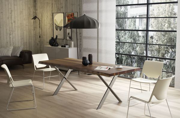 Przede wszystkim takie, które będą podkreślać zamiłowanie do naturalnych rozwiązań. Mogą to być białe, proste meble na wysoki połysk, złamane grafitowymi lub czarnymi dodatkami, a także dodająca ciepła, niska sofa obita ciemną skórą naturalną. Utrzymany w skandynawskiej stylizacji musi być także stół jadalny, koniecznie wykonany ręcznie z litego drewna orzechowego. Mebel przyciągnie uwagę nie tylko grubym na kilka centymetrów blatem, ale także nietypowymi, złożonymi na ukos nogami wykonanymi ze stali nierdzewnej satynowanej. Harmonijnym dodatkiem będą białe krzesła na subtelnie cienkich, metalowych nogach.