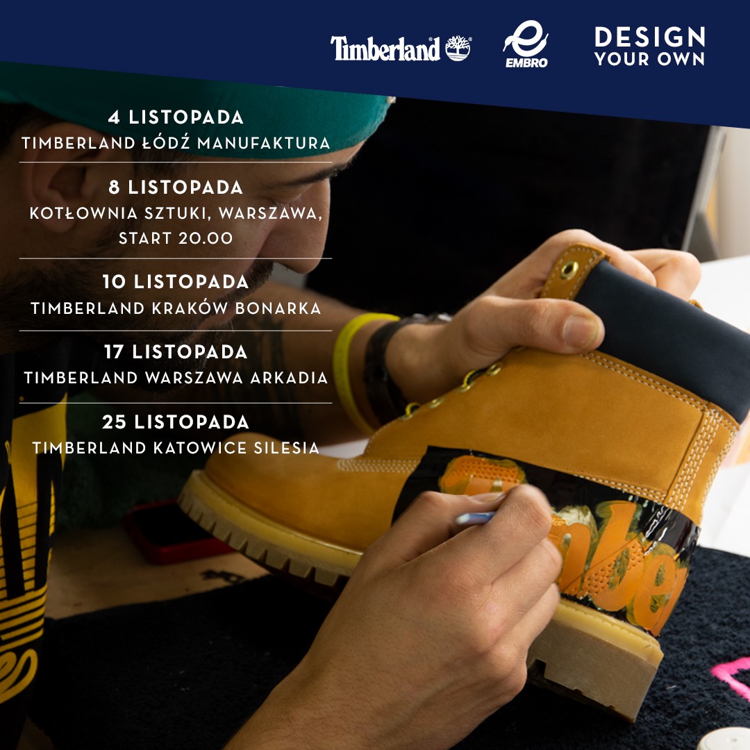 By stać się ikoną musisz się wyróżniać. Masz na to szansę, wstępując do salonów Timberland w łódzkiej Manufakturze (4.11), krakowskiej Bonarce (10.11), warszawskiej Arkadii (17.11) i katowickiej Silesii (25.11). Dodatkową możliwością do spersonalizowania obuwia będą huczne urodziny marki, które odbędą się 8 listopada w warszawskiej Kotłowni M25 (dawna Kotłownia Sztuki) na terenie Soho Factory. Customizacji towarzyszyć będzie koncert gwiazdy oraz sety dj-skie, a wstęp będzie całkowicie darmowy (szczegóły zostaną ujawnione na facebookowym wydarzeniu).