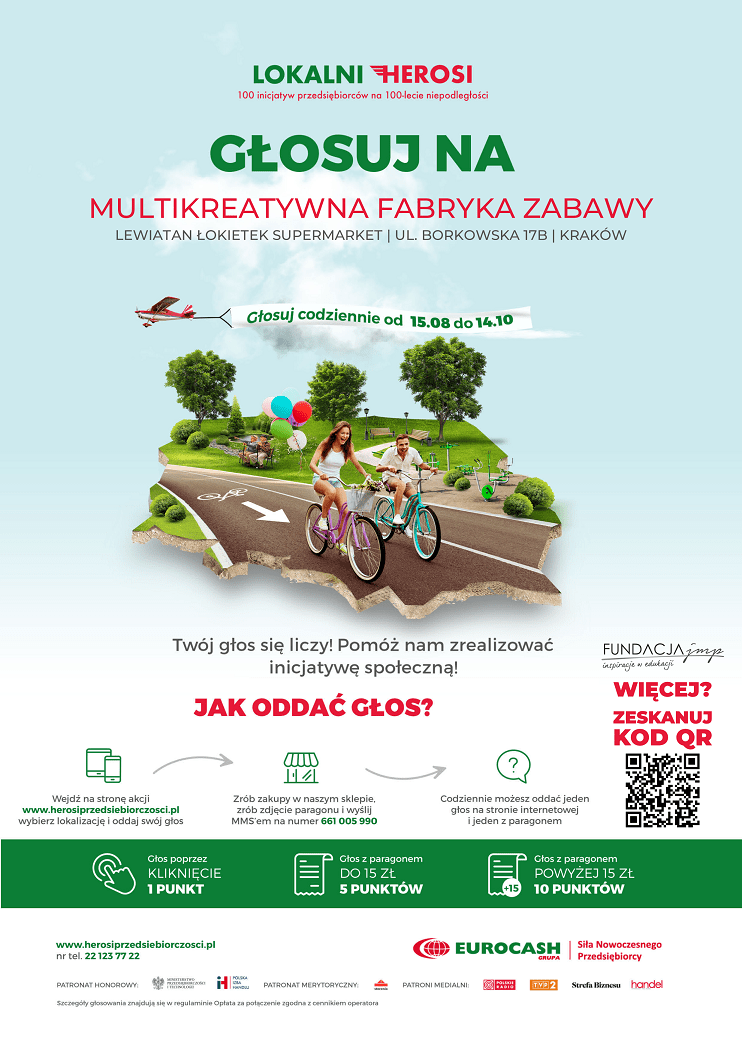 Krakowska Fundacja JMP- Inspiracje w edukacji od lat wspiera dzieci i młodzież. Tym razem zaprasza do wsparcia projektu pod hasłem Multiaktywna Fabryka Zabawy w ramach akcji Lokalni Herosi. Projekt realizowany w ramach konkursu „Lokalni Herosi 100 inicjatyw przedsiębiorców na 100-lecie niepodległości” zakłada zaaranżowanie wspólnej przestrzeni, jaką będzie innowacyjny plac zabaw na jednym z krakowskich osiedli.