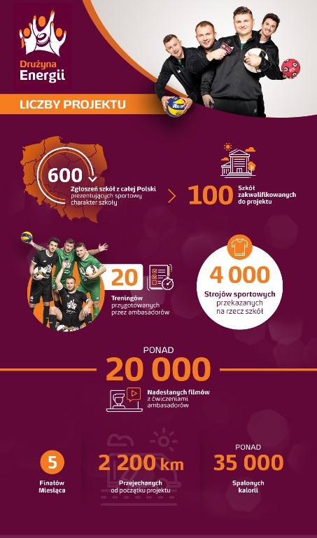 2200 przejechanych kilometrów, ponad 20 000 filmów z ćwiczeniami ambasadorów Drużyny Energii i ponad 35 000 kalorii spalonych podczas treningu z gwiazdami sportu – tak uczestnicy zapamiętają debiutancki sezon sportowej rywalizacji napędzanej przez Energę. Najlepszym szkołom – z Gdyni, Żor i Kętrzyna – przypominać o nim będzie dodatkowo wygrane w programie wyposażenie sal gimnastycznych.