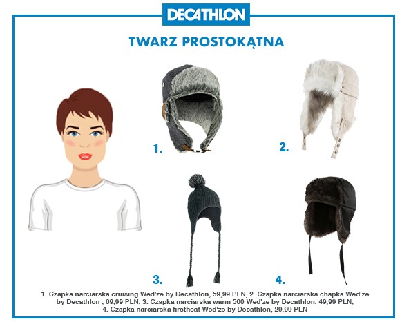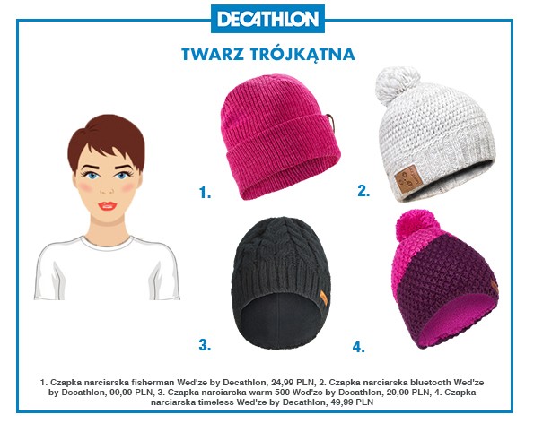 Masz w planach wyjazd na narty? Na stoku najważniejszy jest komfort i bezpieczeństwo, ale w górskich kurortach liczy się również dobry wygląd! Nieodzownym elementem każdej zimowej stylizacji jest czapka. Ale dla wielu z nas jej wybór jest trudną decyzją. Jak wybrać fason, który podkreśli indywidualny charakter twarzy i jednocześnie będzie zgodny z obecnymi trendami? Przed wyprawą na ferie, skorzystaj z krótkiego poradnika sieci Decathlon i dobierz czapkę idealną dla siebie. Jak dobrać czapkę do kształtu twarzy?