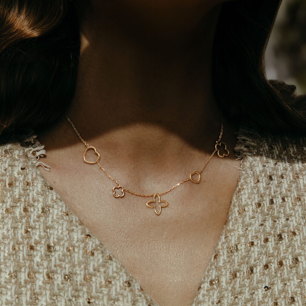 Prostym sposobem na spójny wygląd zestawu biżuterii będzie trzymanie się jednego rodzaju materiału. Klasyczny wybór złota lub srebra, zawsze będzie wyglądać elegancko i estetycznie. Do tego będzie świadczyć to dobrym guście. Naszyjnik damski Lilou ze złota bądź srebra można zestawić z zestawem pierścionków i drobnymi kolczykami lub postawić na parę bransoletek i duże koła. W ten sposób akcesoria będą uzupełniać się, zamiast konkurować ze sobą nawzajem.