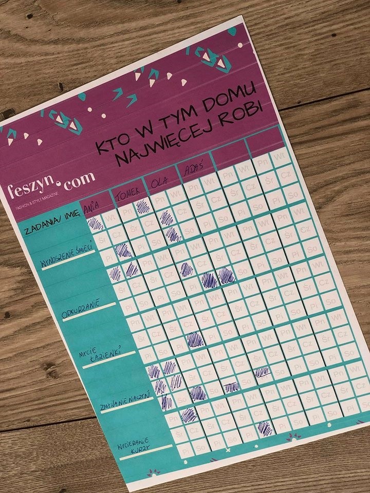 Przygotowaliśmy darmowy pdf, który łatwo i szybko zobrazuje, kto w Twoim domu najwięcej robi, a kto jest leniem.