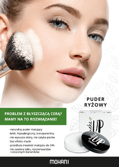Puder ryżowy marki Mohani zawiera wiele cennych składników. Olej z nasion krokosza barwierskiego, sprawia że cera staje się wygładzona i odpowiednio nawilżona. Puder wzbogacony jest o witaminę A, która opóźnia procesy starzenia i regeneruje naskórek. Natomiast witamina E odżywia i sprawia, że skóra jest idealnie sprężysta i elastyczna. W pudrze nie znajdziecie konserwantów. Kosmetyk ten został stworzony na bazie certyfikowanej mączki ryżowej. Dzięki niej puder pochłania sebum i wykazuje działanie matujące. Jest on idealnym zamiennikiem talku, dzięki temu nie pozostawia białych śladów na skórze i jej nie wysusza. Puder nie zawiera barwników i kompozycji zapachowych. Brzmi fajnie? Przeczytajcie więcej!