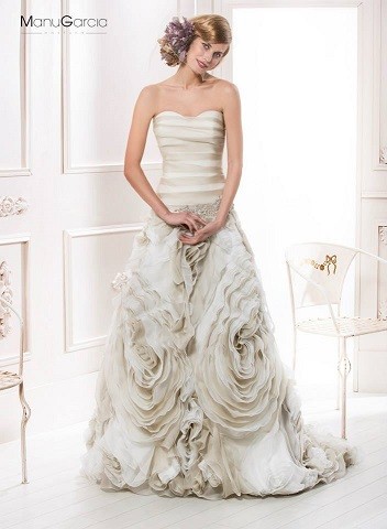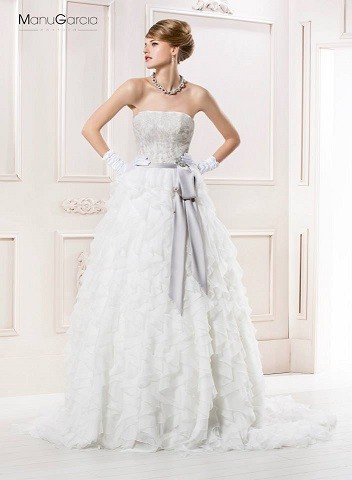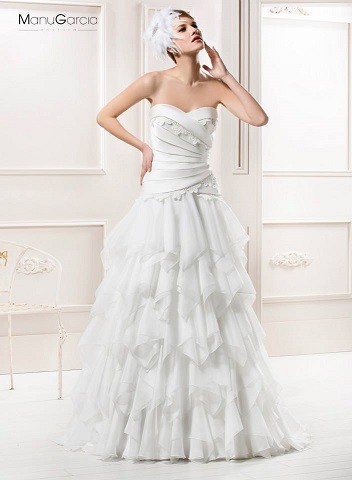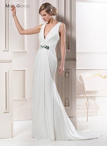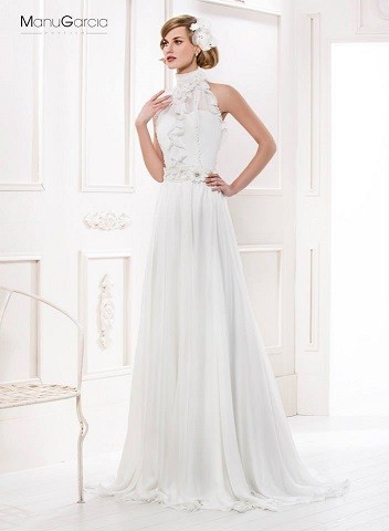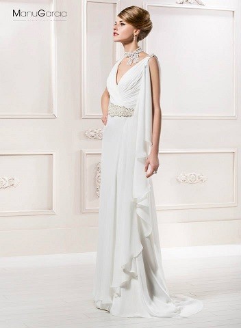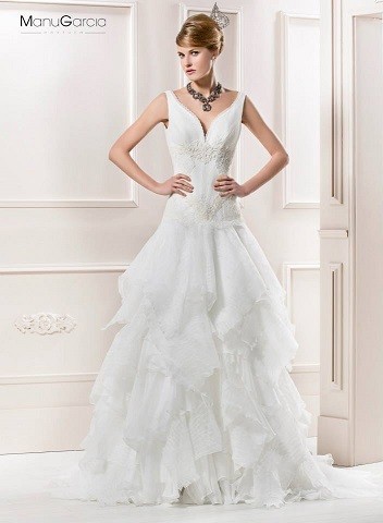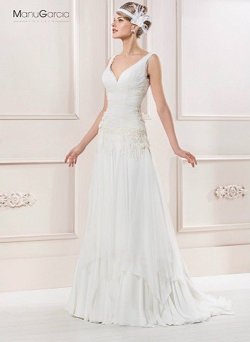 Przedstawiamy najnowszą kolekcję hiszpańskiej marki sukien ślubnych i wieczorowych Manu Garcia. Niedawno publikowaliśmy informację na temat sukienek koktajlowych, szczegóły TUTAJ. Kolekcja rozpoczyna nowy sezon w sezonie ślubnym, sezon 2014. Kolekcja jest na swój sposób delikatna, zmysłowa i elegancka. Doszukujemy się w niej inspiracji w z lat 20/30 XX wieku. Świadczą o tym proste kroje, lekkie dopasowania, suknie na ramiączkach przypominajcie suknie koktajlowe. Długie suknie, lekko opadające w dół, bez ozdób i typowego koła.