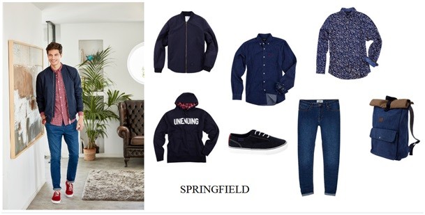 Na koniec coś dla fanów hiszpańskiej marki. Springfield w nowej kolekcji przemycił najmodniejszy kolor na koszule, bomberki, bluzy i dodatki. Navy wygląda świetnie