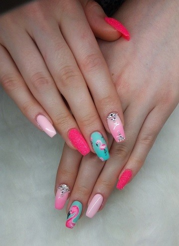 Hitem tego sezonu jest efekt Unicorn, który daje mnóstwo możliwości, ponieważ można go nałożyć na każdy kolor. Szczególnie polecam ten efekt na białym tle, paznokcie wyglądają wówczas zjawiskowo.  Motywami, które tego lata będą często gościły na paznokciach, są marynarskie paski, rajskie kwiaty, liście palmowe oraz flamingi, a wszystko to na kolorowym tle.  Odchodzimy już od tego, żeby paznokcie u stóp były tego samego koloru co u rąk, więc wszelkie szaleństwa są dozwolone” – podpowiada Agata Wiśniewska, Master Educator Akademii ChiodoPRO.