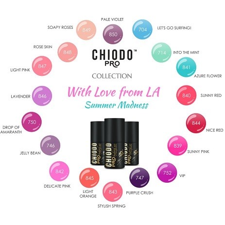 Biorąc pod uwagę trendy sprzedażowe i najczęściej wybierane przez nasze klientki odcienie, stworzyliśmy nową paletę With Love From LA – Summer Madness. To paletka, przygotowana specjalnie z myślą o nadchodzących wakacjach. Dzięki dopracowanej formule nasze lakiery są niezawodne w każdej sytuacji, dlatego też podczas  kilkunastodniowego urlopu nasze klientki  mogą cieszyć się pięknymi paznokciami przez cały czas jego trwania. Nie muszą się martwić o ich wygląd, a  mogą skupić się na wypoczynku. Bogata barwa kolorystyczna umożliwia wykonanie ciekawych, napawających dobrą energią, stylizacji paznokci u rąk i stóp” – podkreśla Marek Moroz, prezes Magnificco Sp.j., producenta marki ChiodoPRO.
