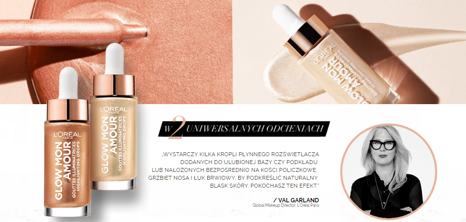 W serii Wake Up and Glow oferowany jest m.in. rozświetlacz w kroplach Glow Mon Amour. Kosmetyk ten można nakładać na kilka sposobów. Niektóre panie preferują dodanie kilku kropel do ulubionego kremu, bazy czy fluidu. Inne wolą nakładać niewielką ilość rozświetlacza na wybrane partie twarzy. Niewielka ilość kosmetyku wystarczy, by skóra wyglądała nieziemsko i świeżo przez cały dzień.