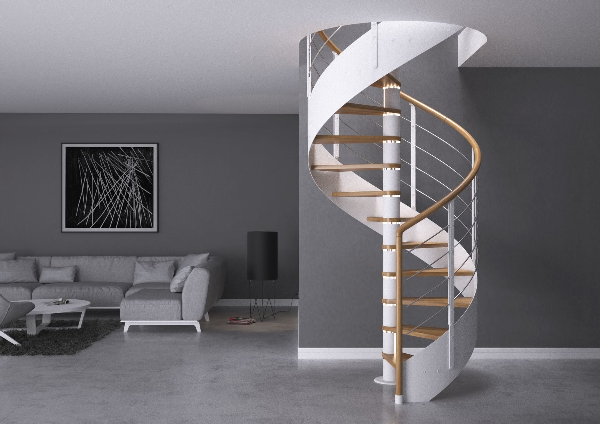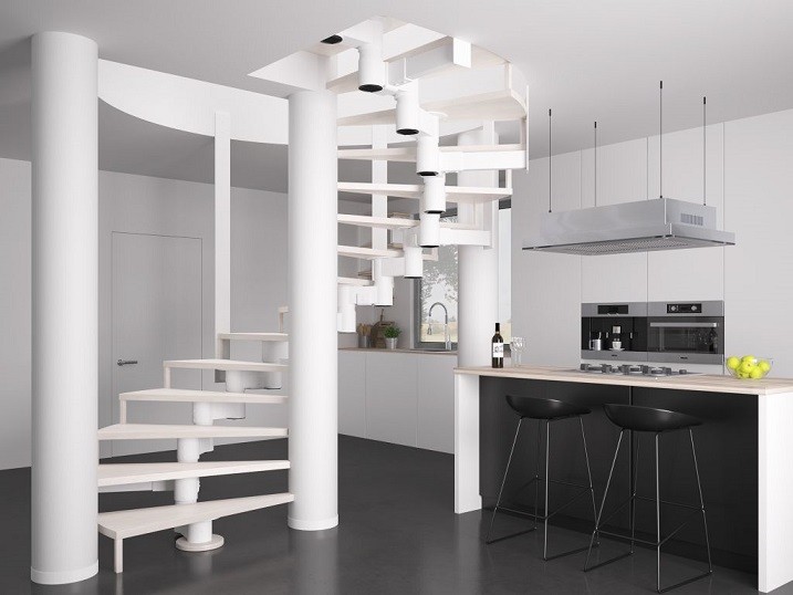 Schody o spiralnej konstrukcji to futurystyczny design, który będzie idealnym uzupełnieniem wnętrza nowoczesnego, minimalistycznego lub modernistycznego, szczególnie gdy połączymy w nich odcienie bieli i szarości. Już sam kształt tych schodów urzeka, będąc niezwykle ciekawym rozwiązaniem architektonicznym, dedykowanym osobom o wysokim poczuciu estetyki, otwartym na mniej szablonowe rozwiązania.