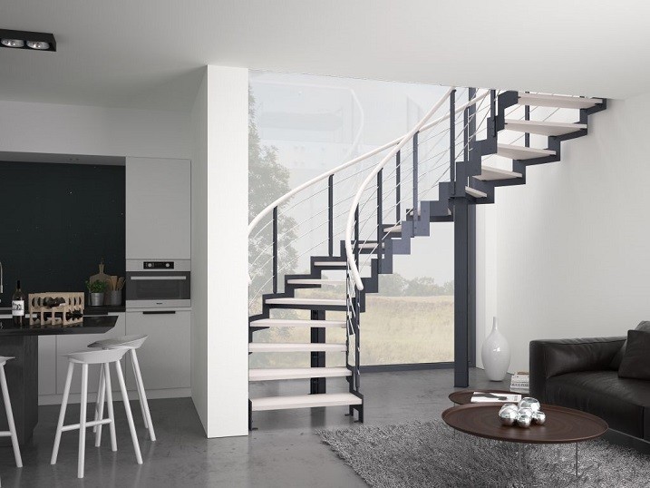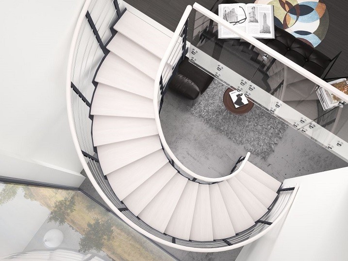 Schody kręcone są doskonałym wykończeniem niewielkiego, dwupoziomowego apartamentu czy mieszkania loftowego. Płynne, strzeliste linie oparte na konstrukcji pionowej zabierają najmniej miejsca, dając pewność, że pomieszczenie nie tylko nie traci przestrzeni, ale dodatkowo jest lepiej doświetlone.