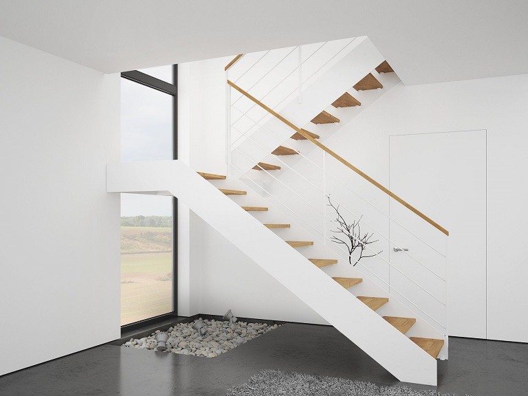 Jeżeli przestrzeń jest duża, sprawdzą się schody dwubiegowe, w kształcie litery „U, podzielone w połowie wysokości podestem.