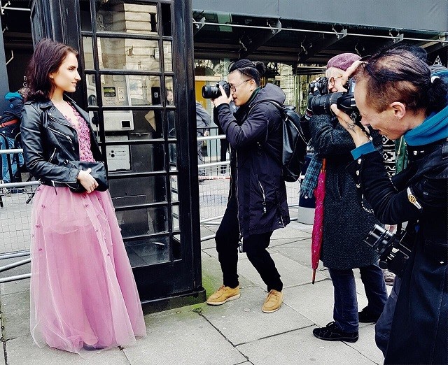 Przed wejściem do British Fashion Council, w którym w trakcie londyńskiego tygodnia mody odbywały się liczne pokazy (między innymi Richarda Quinna, na którym pojawiła się królowa Elżbieta II), uwagę fotoreporterów skupiła zjawiskowa suknia autorstwa polskiej projektantki.