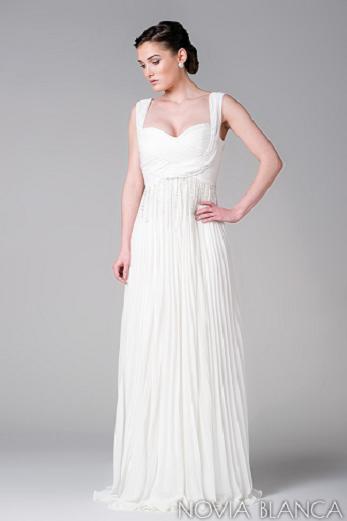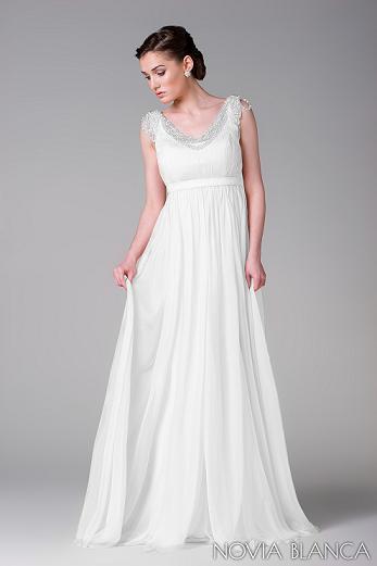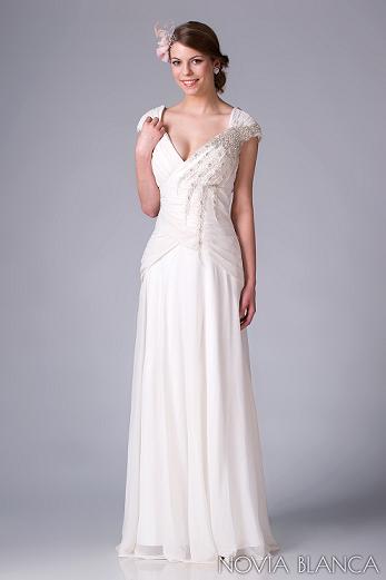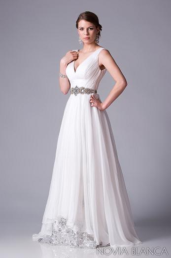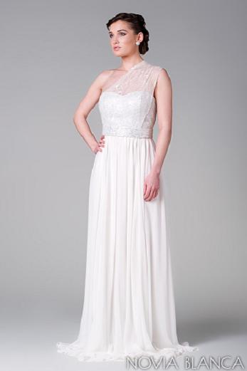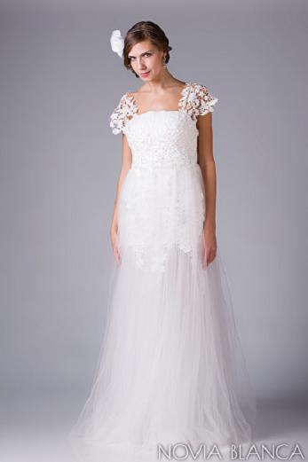 Przyszła Panno Młoda, jeśli szukasz czegoś kobiecego, subtelnego co podkreśli nie tylko urodę i kształty ale także osobowość, musisz zobaczyć i koniecznie przymierzyć suknię Novia Blanca. Martwisz się o dodatki? Novia Blanca oferuje wszystko czego potrzebujesz, aby Twój ślub był prawdziwie wyjątkowy. Suknie ślubne oraz dodatki NOVIA BLANCA to kwintesencja piękna i kobiecości. Inspirowane retro i vintage są spełnieniem marzeń Panien Młodych ceniących sobie ponadczasową elegancję i klasyczne kroje. Suknie znajdujące się w ofercie to alternatywa dla kobiet o wyrafinowanych gustach, poszukujących prostej formy z nutką ekstrawagancji. Delikatne koronki, zwiewne materiały, kryształowe aplikacje… nasze suknie wykonane są jedynie z najlepszych tkanin, które sprawią, że każda Panna Młoda poczuje się w tym dniu nie tylko pięknie, ale i wygodnie.Wszystkie suknie są szyte na miarę, a dodatki wykonywane ręcznie z dbałością o najmniejszy szczegół.