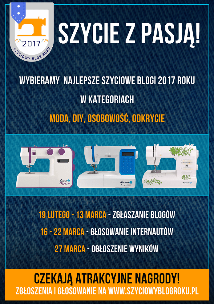 Konkurs Szyciowy Blog Roku powstał z myślą o wielbicielach szycia, którzy chcą zarażać innych pasją tworzenia poprzez dokumentowanie swojej pracy na blogu. To już piąta edycja konkursu. Laureaci zostaną wyłonieni w trzech kategoriach – moda, DIY, osobowość.