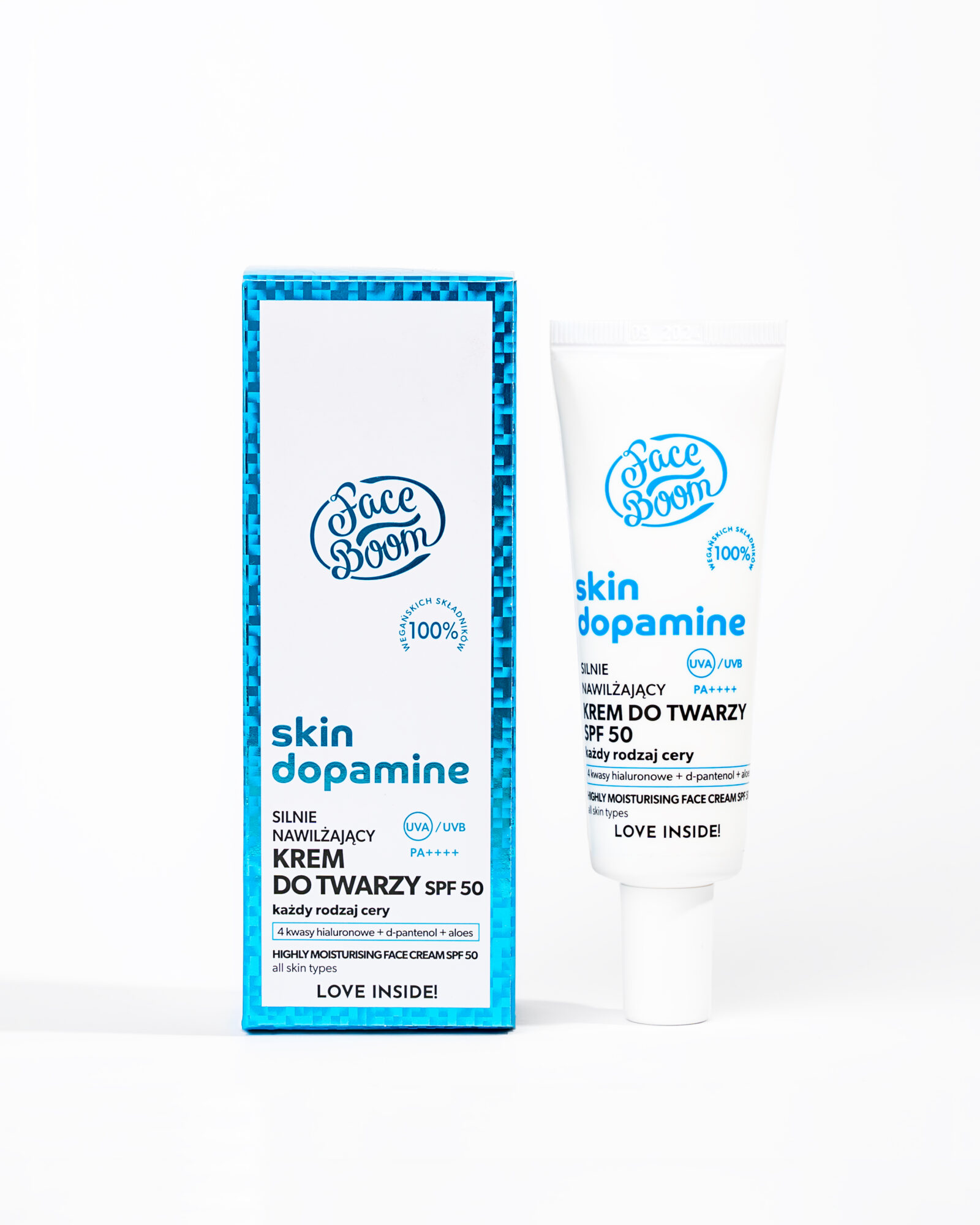 Silnie nawilżający krem do twarzy SPF 50, SKIN DOPAMINE, FaceBoom