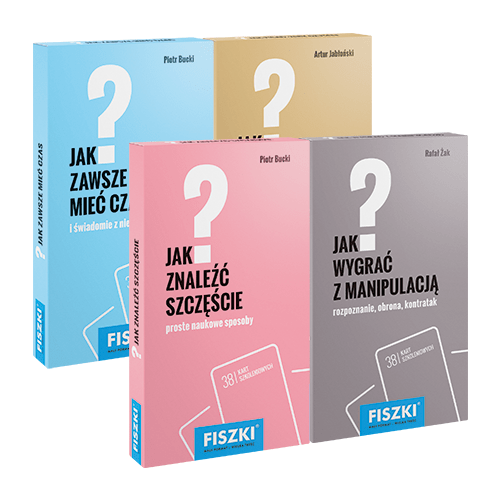 Ustalając swoją własną definicję szczęścia, zarówno w sferze kariery zawodowej, jak i życia rodzinnego, warto opracować plan poszczególnych kroków, przybliżających nas do głębokiego poczucia szczęścia. Pomogą nam w tym fiszki „Jak znaleźć szczęście?”. Na 38 kartach znajdziemy codzienne zadania lub przemyślenia, które zmotywują nas do wprowadzenia w życie realnych zmian. Same karty są na tyle małe, że można je zmieścić do torebki czy kieszeni i nie znajdować wymówek